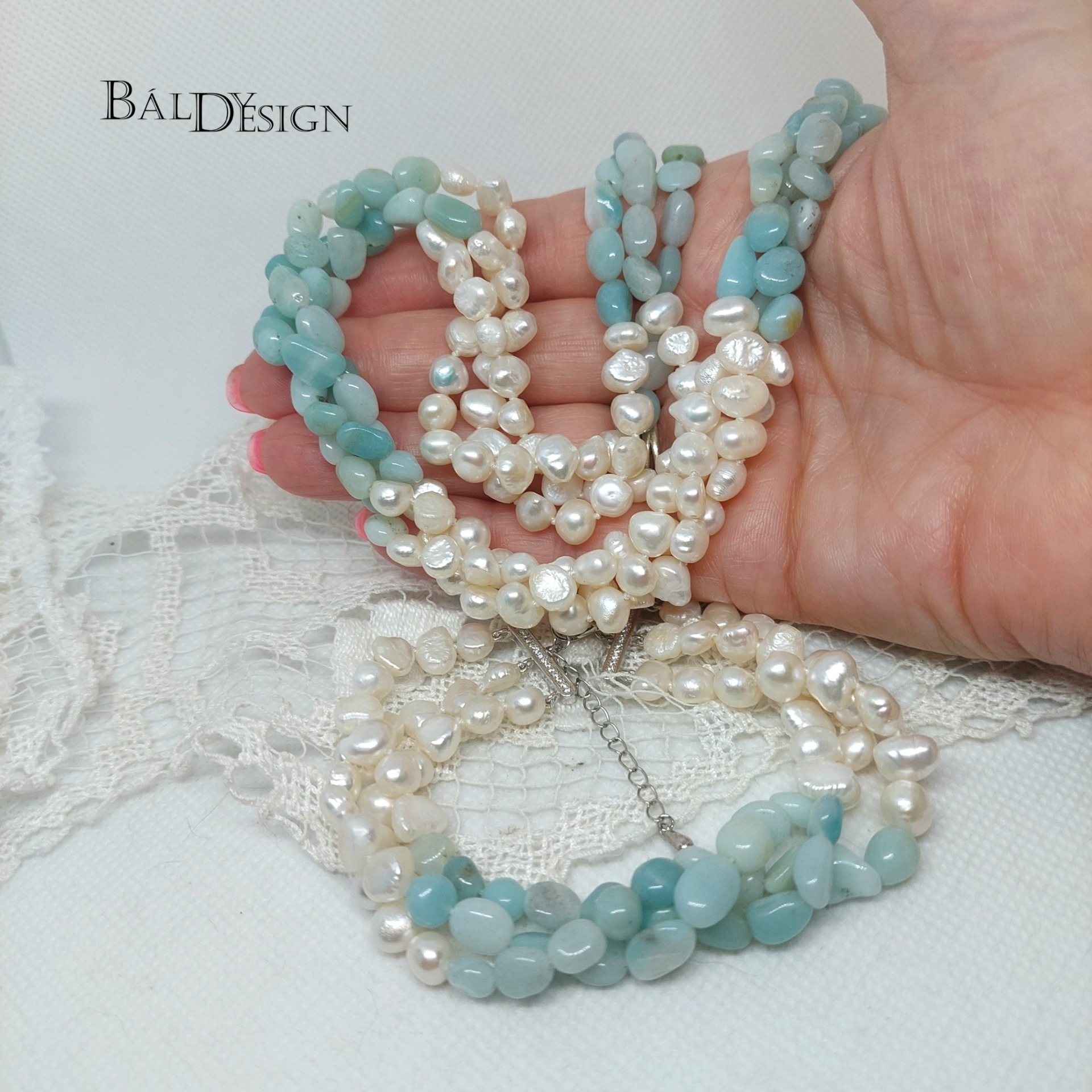 Lenyűgöző 3 soros gyöngy és amazonit szett!