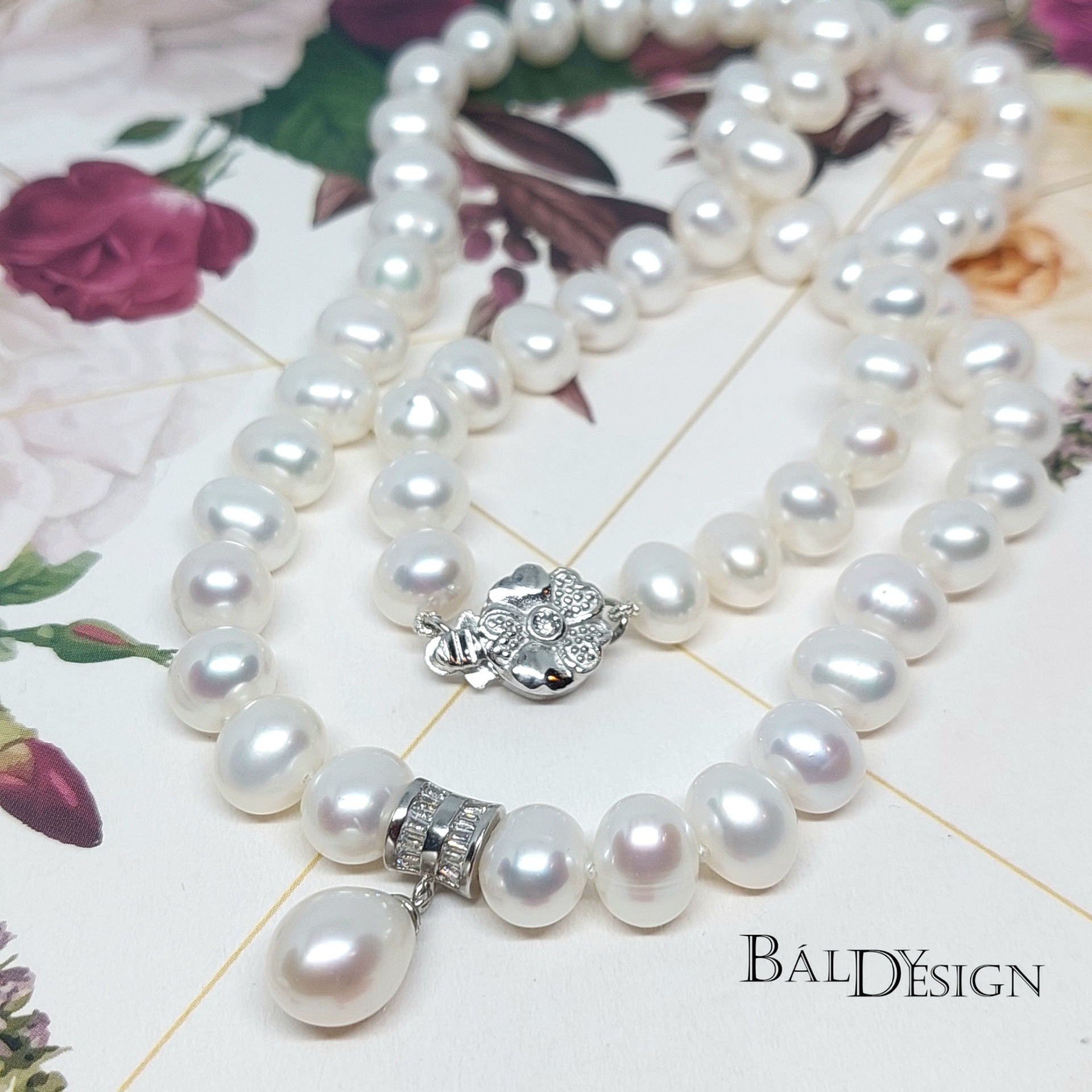- Medál típusa: Csepp alkakú édesvízi tenyésztett gyöngy, 8x10mm