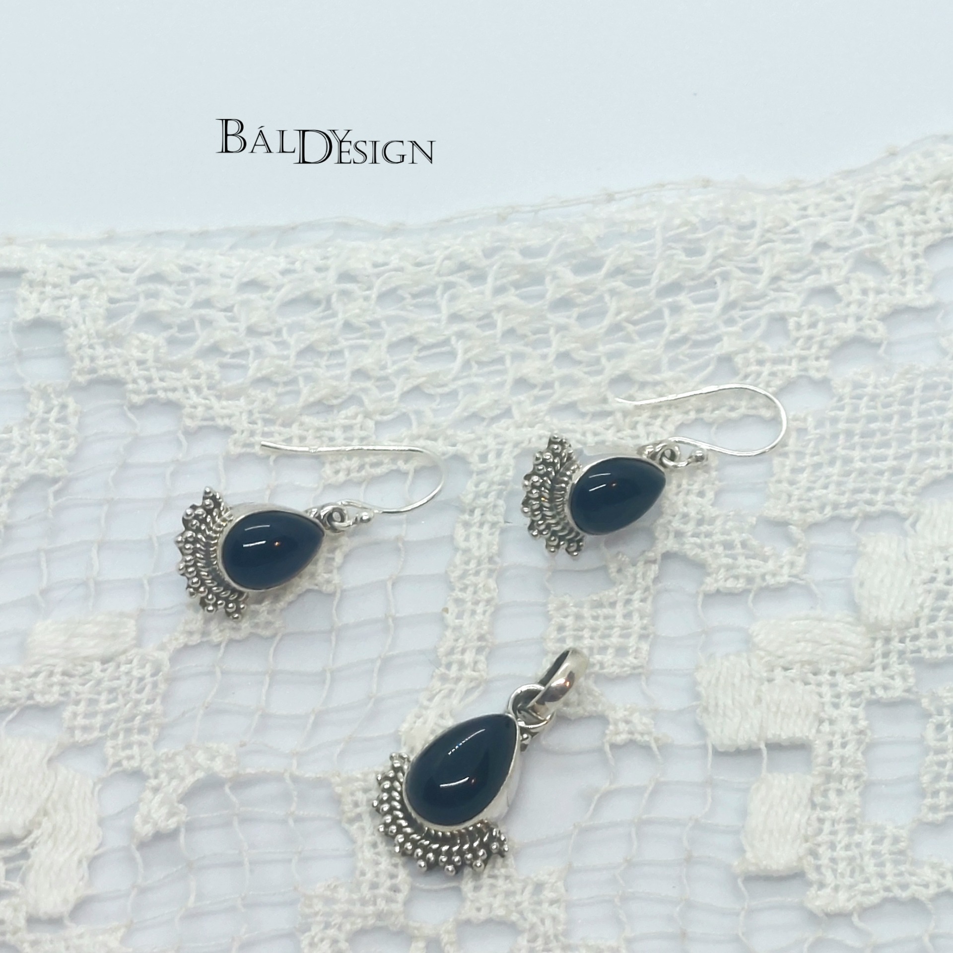 Légy te a figyelem középpontjában ezzel a lélegzetelállító,valódi onix drágakővel díszített, sterling ezüst ékszer szettel! A klasszikus elegancia és a modern, finoman kidolgozott részletek tökéletes harmóniája. Ez a szett azonnal feldobja mind a hétköznapi, mind az alkalmi öltözékedet.