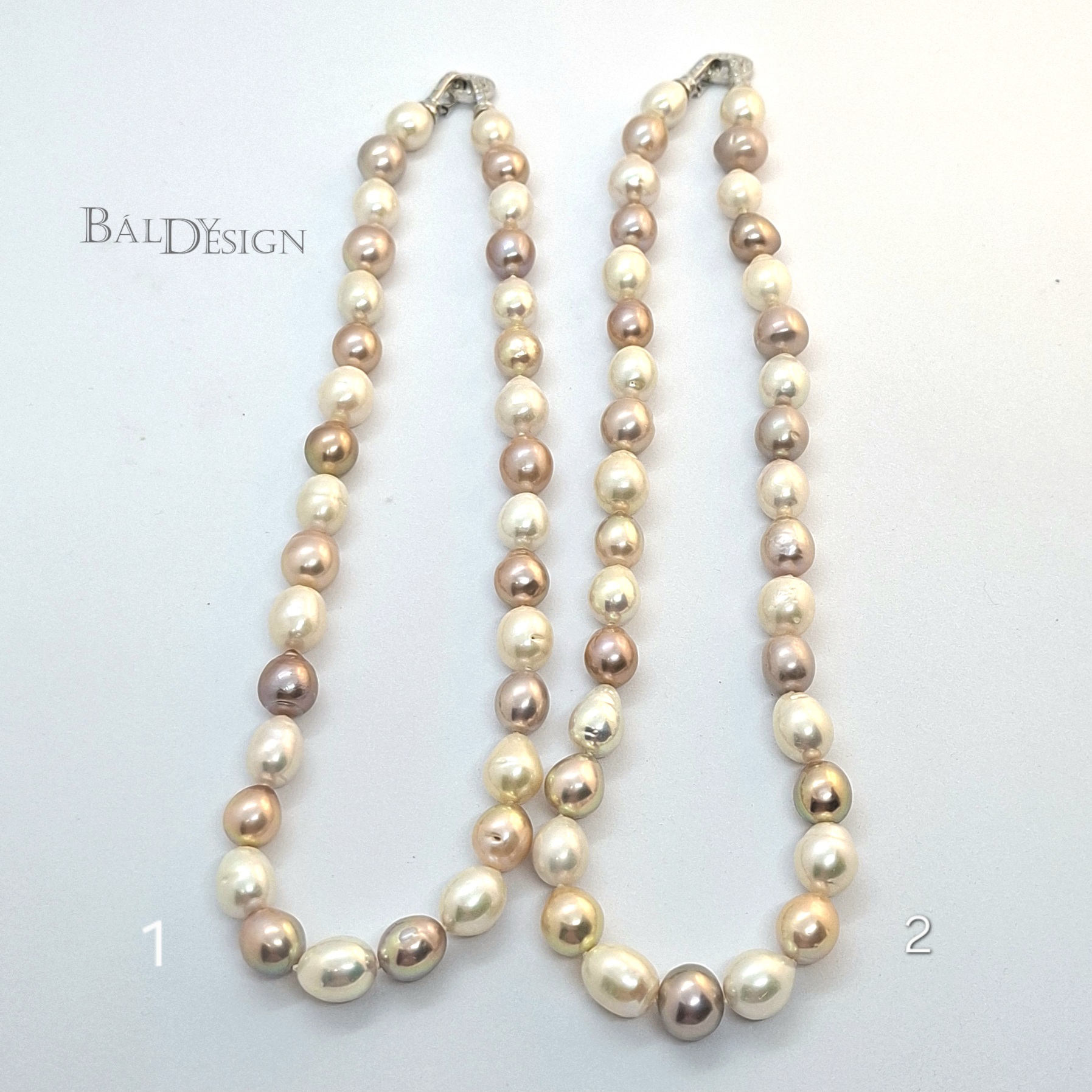 Forma: Karakteres, enyhén barokk/ovális formák, melyek igazolják a gyöngyök valódi, természetes eredetét.