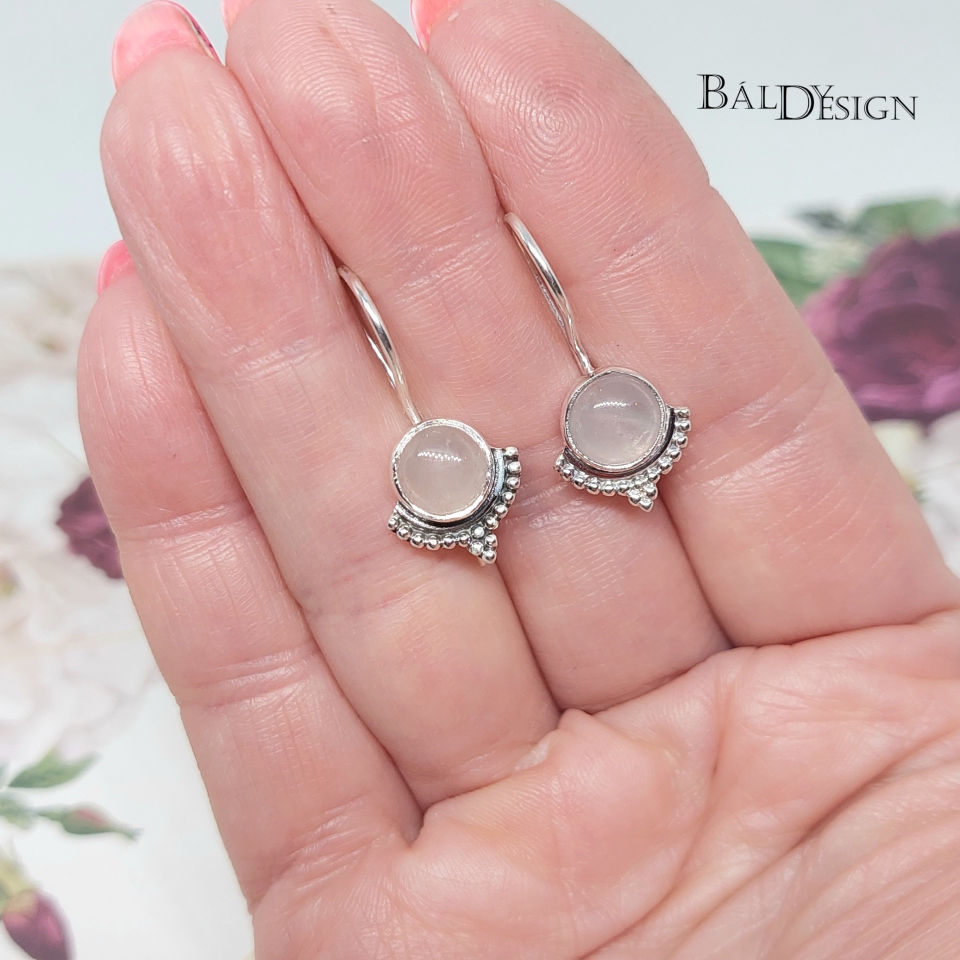 A fülbevaló alsó részén található ízléses minta tovább fokozza az ékszer egyediségét: finom, nőies és kifinomult részletekkel díszített, amelyek kiemelik az ásvány természetes szépségét. A valódi holdkő ásvány különleges fénye miatt ideális választás azoknak, akik szeretik a harmonikus, romantikus jellegű ékszereket.